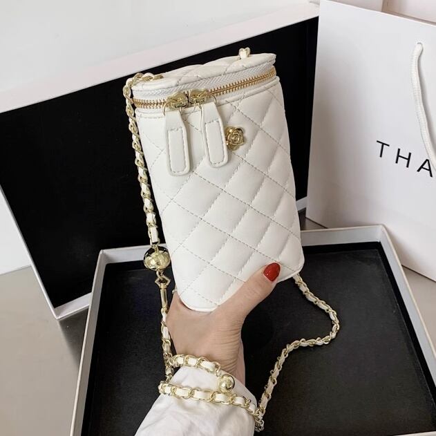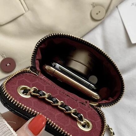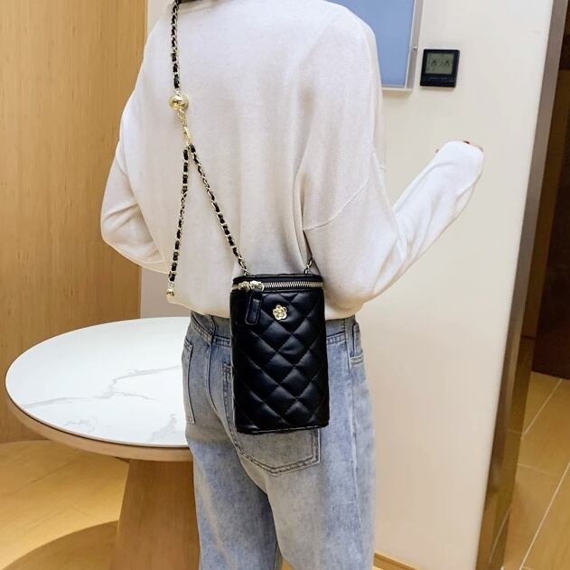シンプルながらもおしゃれなキルティングポケットミニショルダーバッグ。