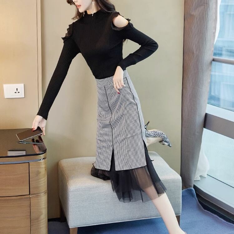 一枚でおしゃれなコーディネートが完成するオフショルニットセットアップ。