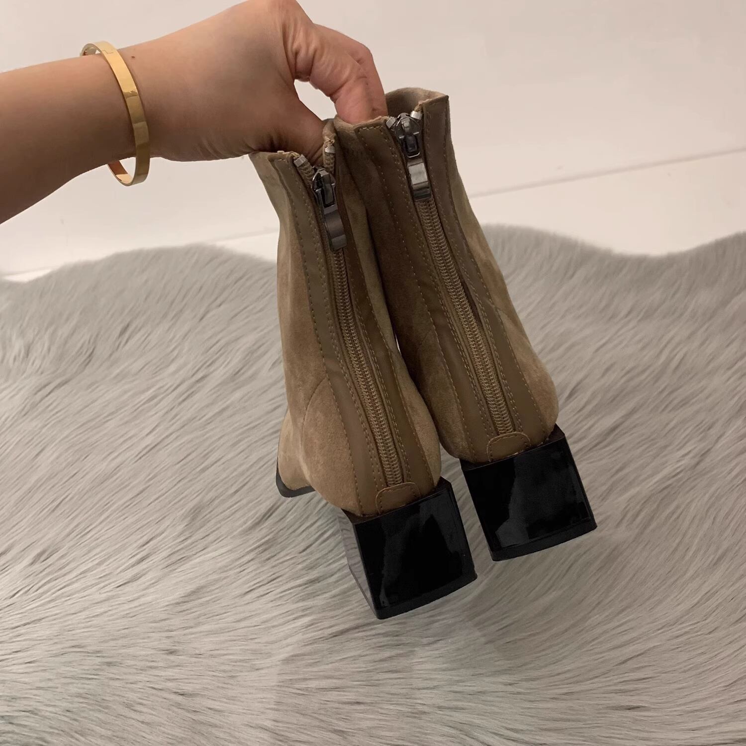 個性的なデザインのスクエアトゥパッチワークアンクルブーツが登場!