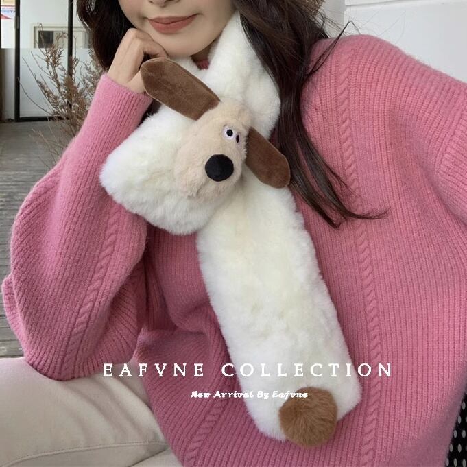 犬マスコット付き♡ふわふわマフラー